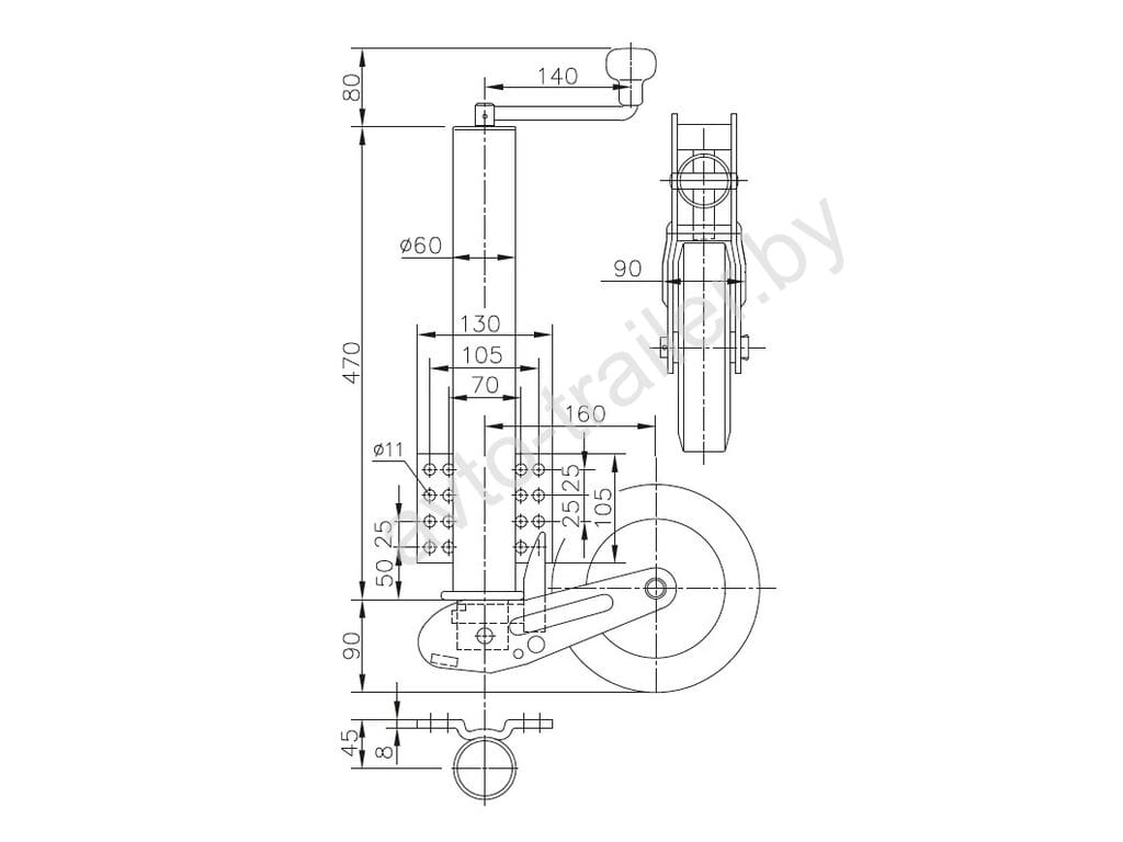 Опорное колесо автомат ATK60-200/50 с нагрузкой до 350 кг – это надежное и удобное решение для эксплуатации прицепа. Заказывайте его в Avto-Trailer.BY и получайте качественные запчасти с гарантией и доставкой по Беларуси.Опорное колесо автомат АТК60-200/50, нагрузка 350 кг